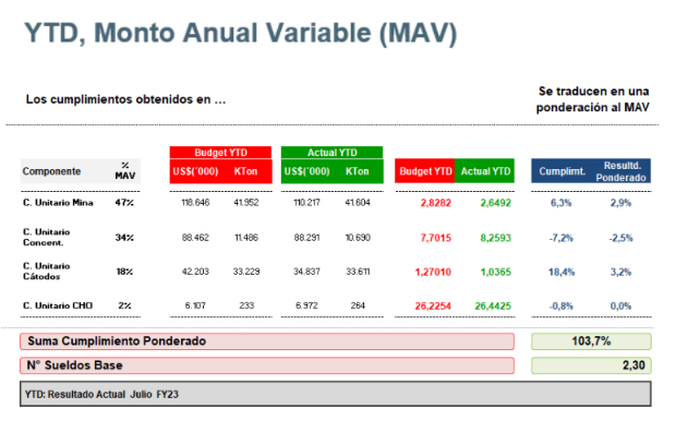Acuerdo contenido en el Convenio Colectivo de Trabajo vigente Minera Escondida y Sindicato N°2 de Trabajadores Resultados Julio 2022